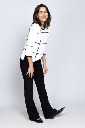 Soepel vallende pantalon met een haak- en ritssluiting en lusjes in de band voor een ceintuur. Hij heeft steekzakken aan de voorkant, paspelzakken aan de achterkant en stretch in de stof waardoor hij mooi valt en comfortabel draagt