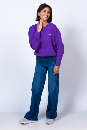 Flair jeans met een knoop- en ritssluiting, steekzakken aan de voorkant en opgestikte zakken aan de achterkant. Ook zit er stretch in de stof waardoor hij comfortabel draagt