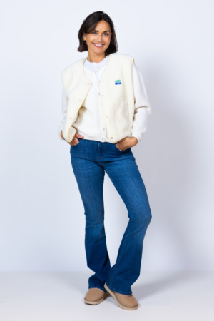 Loose fit wolmix vest met een ronde hals, lange mouwen en parelmoer knoopjes