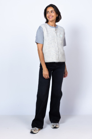 Gestreept alpacamix vest met een V-hals, knoopjes en het logo op de borst
