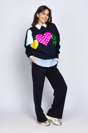 Wijde pantalon met een haak- en ritssluiting, lusjes in de band voor een ceintuur en bandplooi. Hij heeft steekzakken aan de voorkant, fake zakken aan de achterkant en stretch in de stof waardoor hij mooi valt en comfortabel draagt