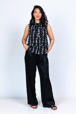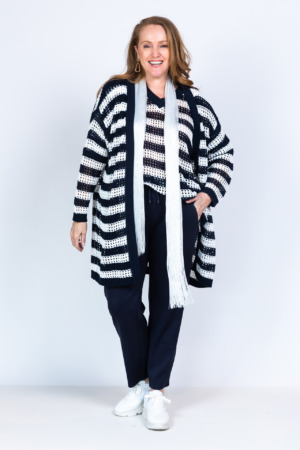 Broek met een knoop- en ritssluiting en lusjes in de band voor een ceintuur. Hij heeft zakjes aan de voorkant, fake zakken aan de achterkant en stretch in de stof waardoor hij heerlijk draagt