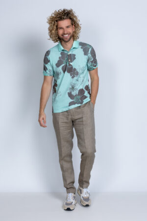 Chino met een knoop- en ritssluiting en lusjes in de band voor een ceintuur. Hij heeft steekzakken aan de voorkant, paspelzakken aan de achterkant en een klein beetje stretch in de stof waardoor hij comfortabel draagt