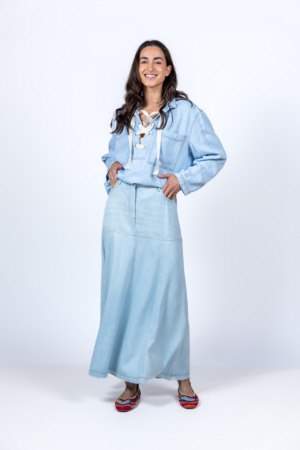 Elegante lange rok met ombre-effect, een elastische band in de taille en hoge splitten aan de zijkant