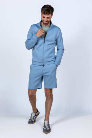 Chino met een knoop- en ritssluiting en lusjes in de band voor een ceintuur. Hij heeft steekzakken aan de voorkant, fake zakken aan de achterkant en stretch in de stof waardoor hij comfortabel draagt