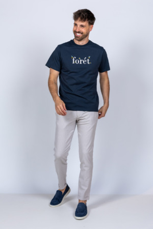 T-shirt met korte mouwen, een ronde hals en tekst op de borst en aan de achterkant. Hij is gemaakt van organisch katoen