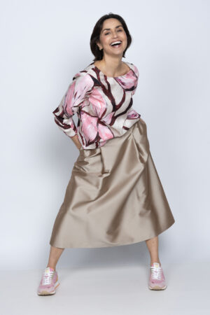 Blouse/top met een vierkante halslijn, aangeknipte mouwen en een volant strook aan de rechter voorkant. Ook zit er stretch in de stof waardoor hij comfortabel draagt
