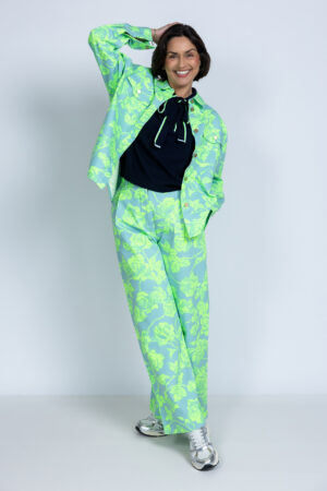 Pantalon met een elastische band in de taille, steekzakken aan de voorkant en fake zakken aan de achterkant. Ook zit er stretch in de stof waardoor hij comfortabel zit