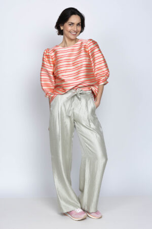 Pantalon met een elastische band in de taille, steekzakken aan de voorkant en stretch in de stof waardoor hij comfortabel draagt