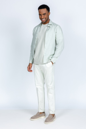 Katoen- en linnenmix overhemd met lange mouwen en een verticaal gestreept dessin