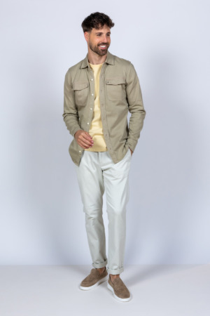 Chino jeans met een knoop- en ritssluiting en lusjes in de band voor een ceintuur. Hij heeft steekzakken aan de voorkant en fake zakken aan de achterkant. Ook zit er stretch in de stof waardoor hij comfortabel draagt