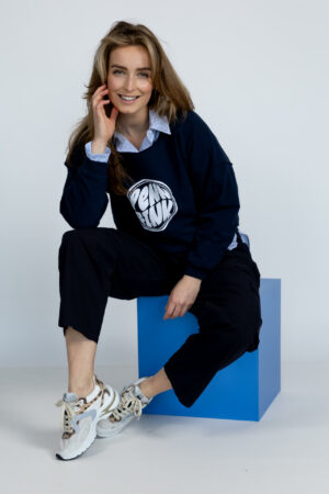 Loose fit sweater met een ronde hals en pailletten op de mouwen