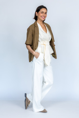 Boxy fit blouse met een borstzakje en strikjes aan de manchetten