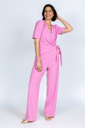 Pantalon met een haak- en ritssluiting en lusjes in de band voor een ceintuur. Hij heeft steekzakken aan de voorkant, fake zakken aan de achterkant en stretch in de stof waardoor hij comfortabel zit