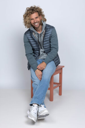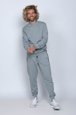 Joggingbroek met een elastische band met koordje in de taille. Hij heeft steekzakken met rits aan de voorkant, een fake zak aan de achterkant en elastiek aan de onderkant