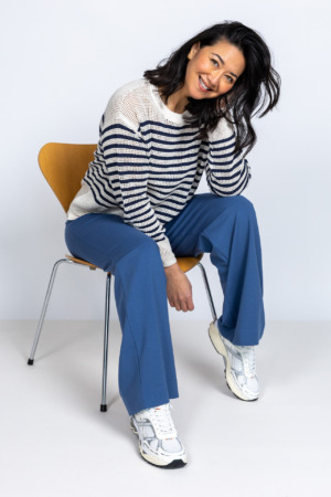 Katoenen strokenjurk met uitlopende mouwen en ecru borduursels
