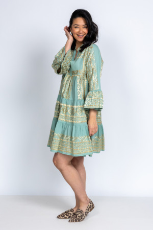 Maxi strokenjurk met gouden borduursels