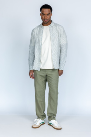 Broek met een elastische band met koordje in de taille. Hij heeft steekzakken aan de voorkant, een fake zak aan de achterkant en stretch in de stof waardoor hij comfortabel draagt