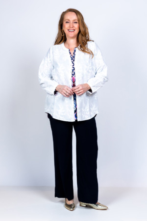 Melé-look katoenen jasje met knoopjes en franjes aan de randen