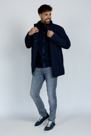 Chino met een knoop- en ritssluiting en lusjes in de band voor een ceintuur. Hij heeft steekzakken aan de voorkant, paspelzakken aan de achterkant en een klein beetje stretch in de stof waardoor hij comfortabel zit