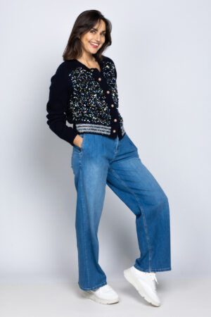Slimfit pantalon met een knoop- en ritssluiting, een doorgestikte naad aan de voorkant en stretch in de stof waardoor hij comfortabel zit
