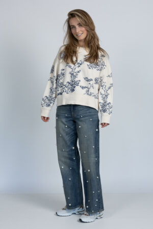 Loose fit jurk met een bloemdessin, strikkoordje in de taille en hij heeft wijde korte mouwen