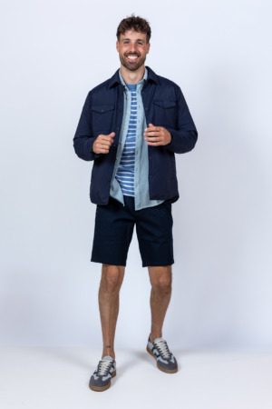 Short met een knoop- en ritssluiting. Hij heeft steekzakken aan de voorkant, paspelzakken aan de achterkant, een omslag en stretch in de stof waardoor hij comfortabel draagt