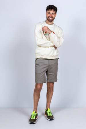 76% katoen, 15% lyocell, 5% gerecycled katoen, 3% elastomultiester, 1% elastaan