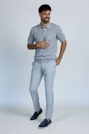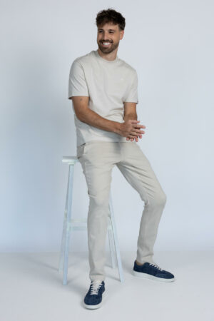 Chino jeans met een knoop- en ritssluiting en lusjes in de band voor een ceintuur. Hij heeft steekzakken aan de voorkant, paspelzakken aan de achterkant en stretch in de stof waardoor hij comfortabel zit