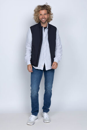 Chino jeans met een knoop- en ritssluiting en lusjes in de band voor een ceintuur. Hij heeft steekzakken aan de voorkant en fake zakken aan de achterkant. Ook zit er stretch in de stof waardoor hij comfortabel draagt