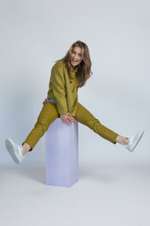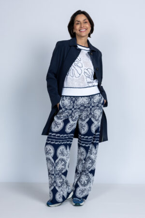Mantel met een reverskraag, steekzakken en knopen aan de voorkant. Hij heeft een strikceintuur in de taille, splitten aan de zijkant en stretch in de stof waardoor hij comfortabel draagt