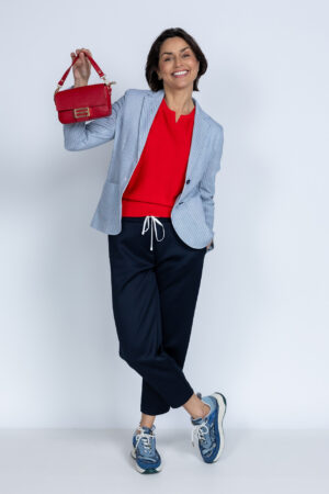 Double breasted jasje met een reverskraag, steekzakken aan de voorkant en veel stretch in de stof waardoor hij comfortabel zit