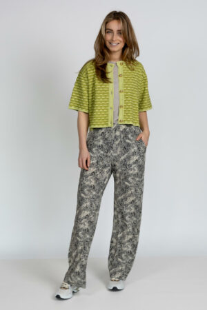 Soepel vallende pantalon met een elastische band in de taille, steekzakken en een doorgestikte naad aan de voorkant