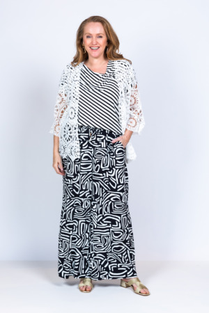 7/8 gebloemde broek met een koordje in de taille, steekzakken aan de voorkant en opgestikte zakken aan de achterkant