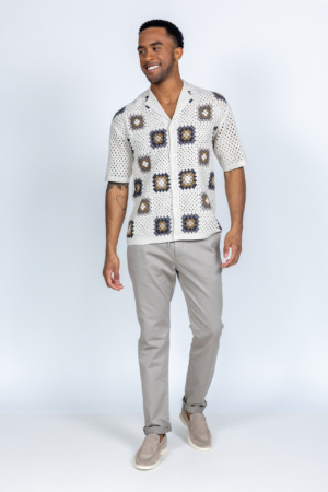 Katoenen overhemd met korte mouwen en een drukke print met bloemen/bladeren