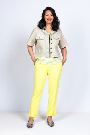 Broek met een elastische band in de taille en stretch in de stof waardoor hij heerlijk zit