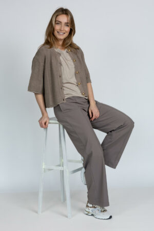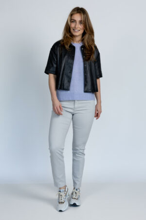 Kort zilver blouse/jasje met een kraag, knopen en grote zakken aan de voorkant