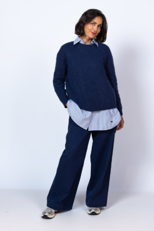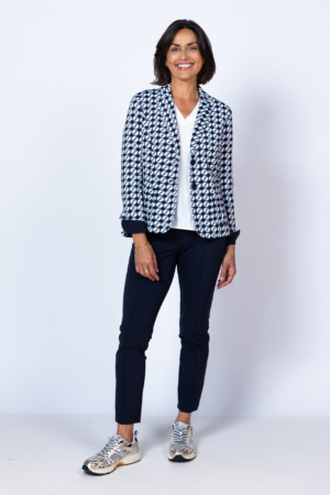 Pantalon met een haak- en ritssluiting en lusjes in de band voor een ceintuur. Hij heeft een doorgestikte naad aan de voorkant, naad aan de achterkant en veel stretch in de stof waardoor hij comfortabel draagt