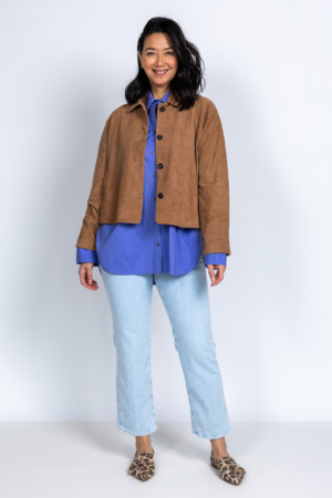 Patchwork doorgestikt jasje met klepzakken aan de voorkant