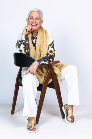 Doorknoop jurk die ook leuk als blouse te dragen is. Hij heeft driekwart mouwen met elastiek aan de manchetten, een krijtstreep en stretch in de stof waardoor hij heerlijk zit