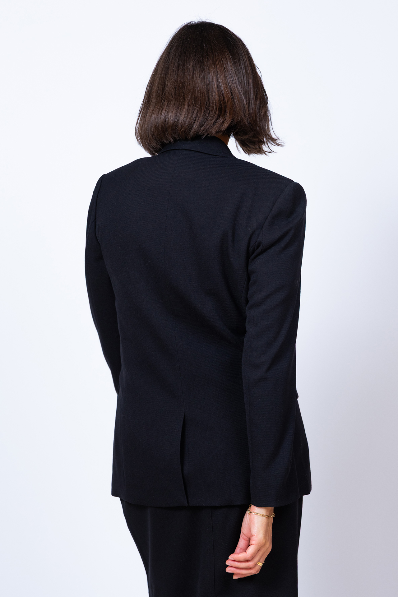 Lange blazer met een reverskraag, knoop, klepzakken aan de voorkant en een split aan de achterkant