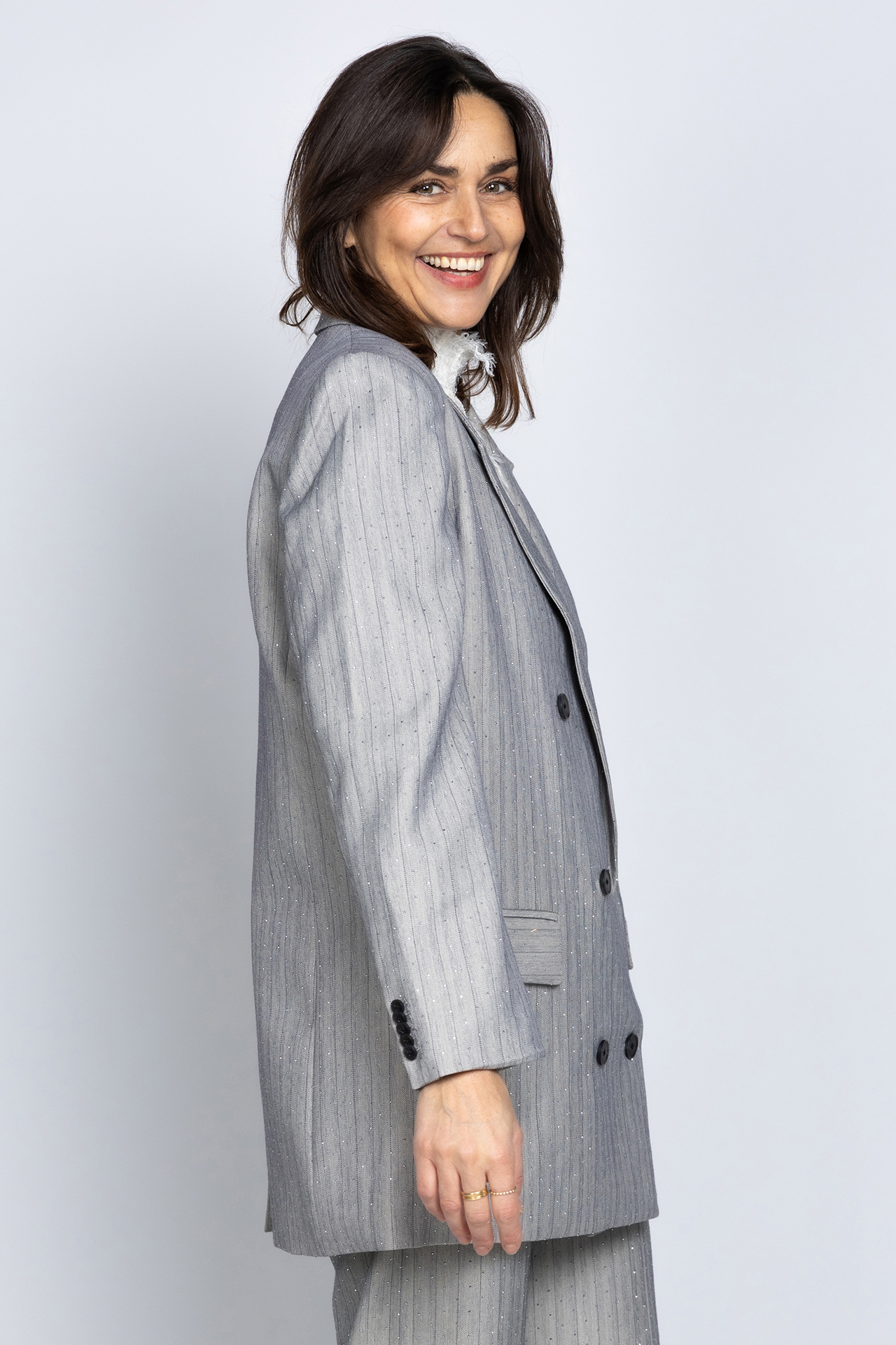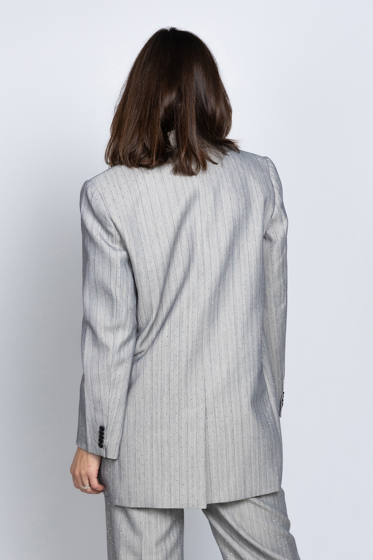 Loose fit double breasted blazer met klepzakken aan de voorkant, all-over strass steentjes en een split aan de achterkant