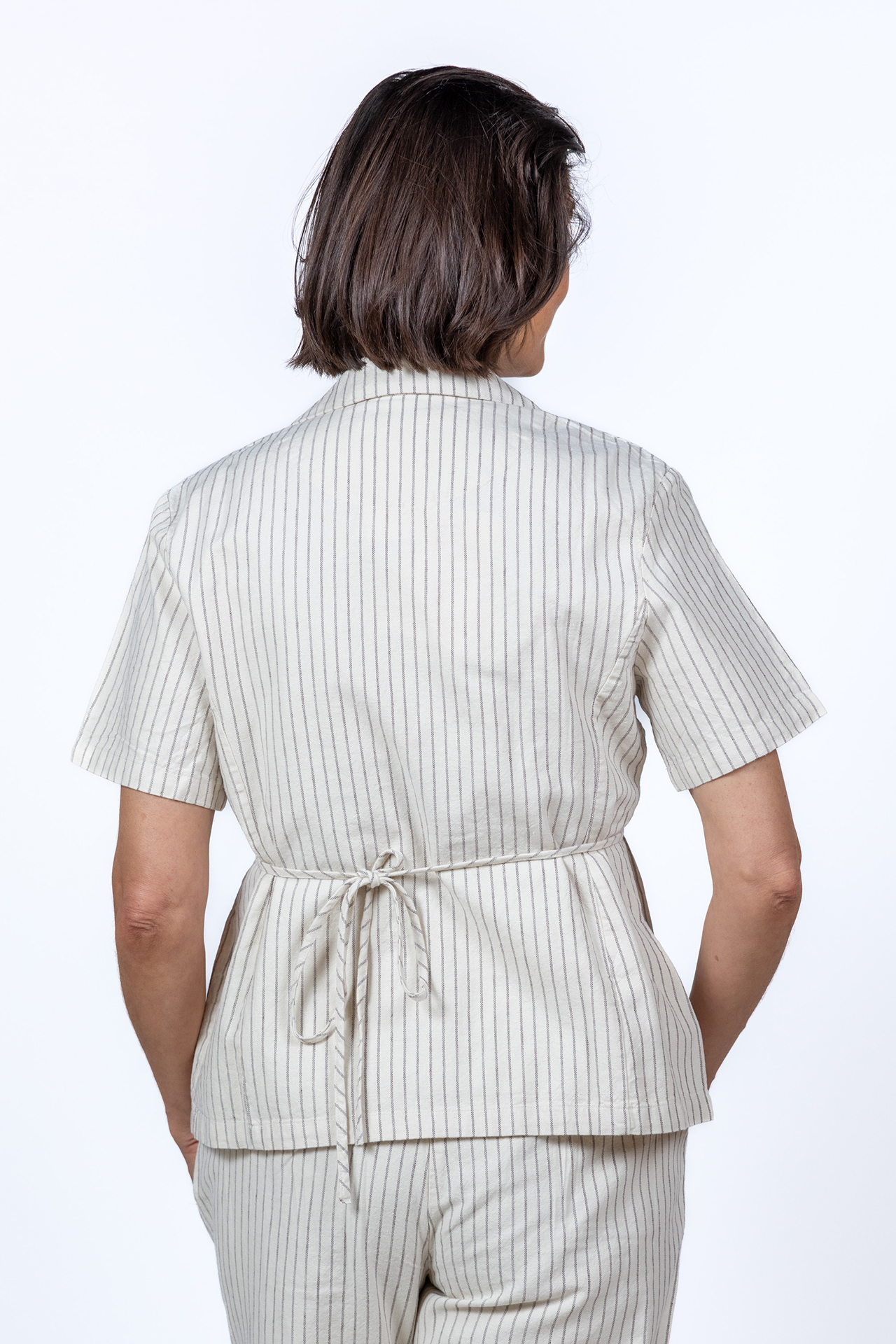 Krijtstreep blazer met korte mouwen en strikkoordje in de taille