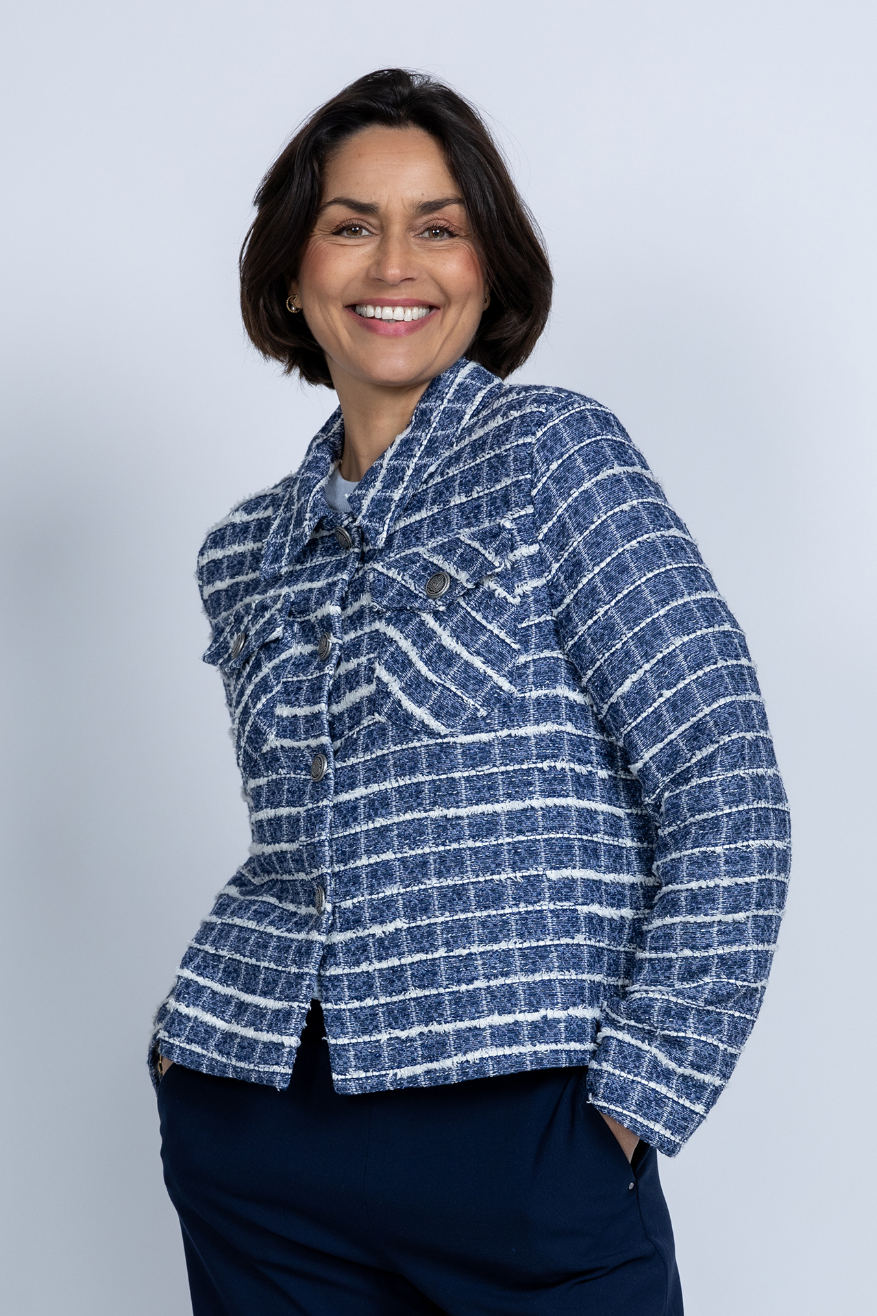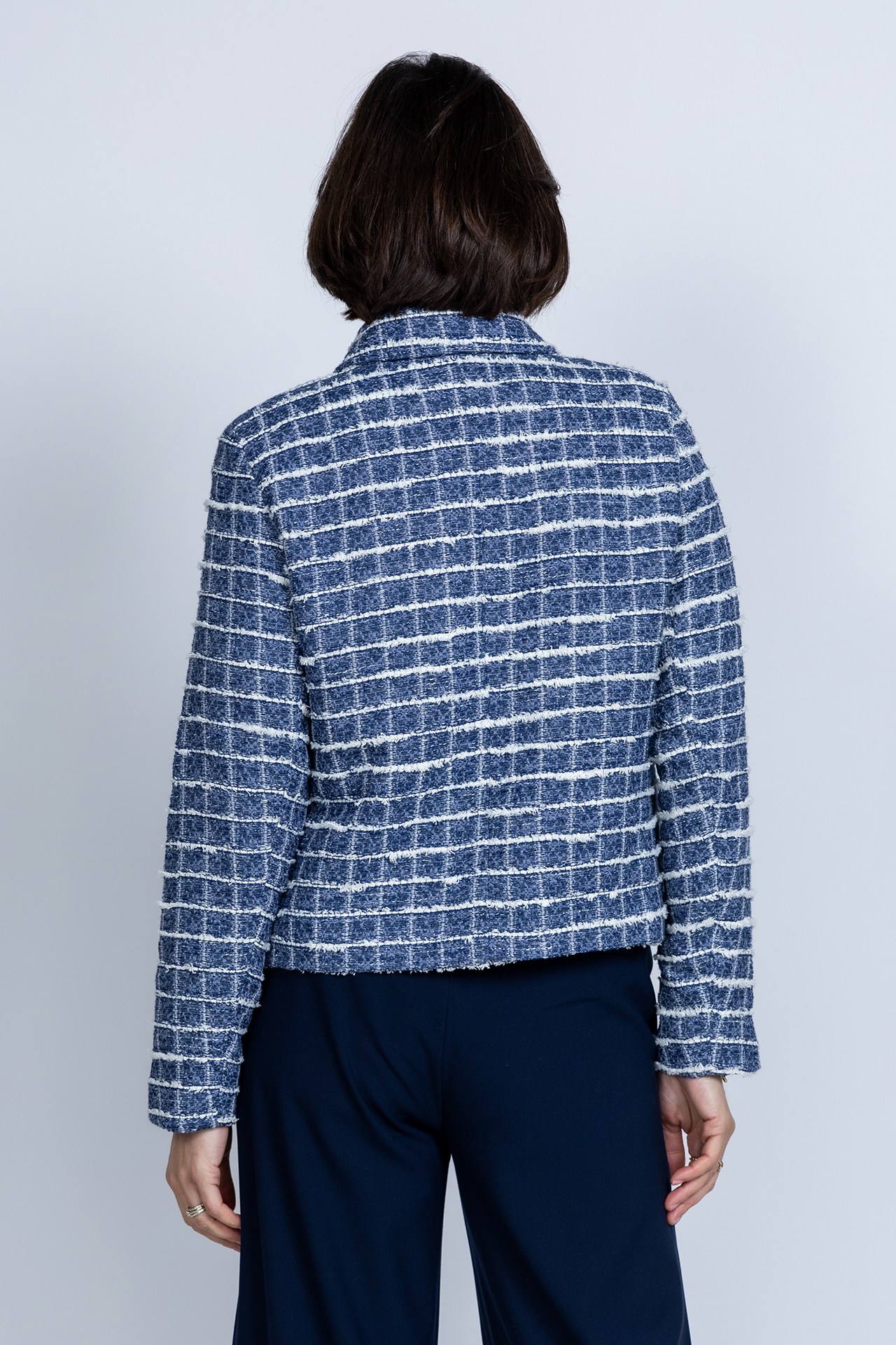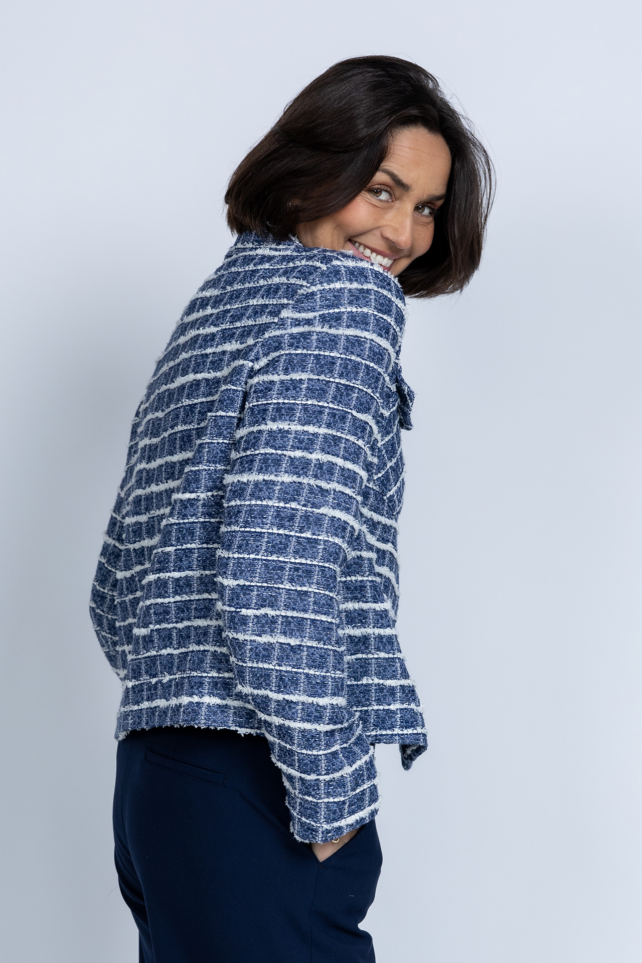 Tweed jasje met franjes, klepzakken op de borst en knopen