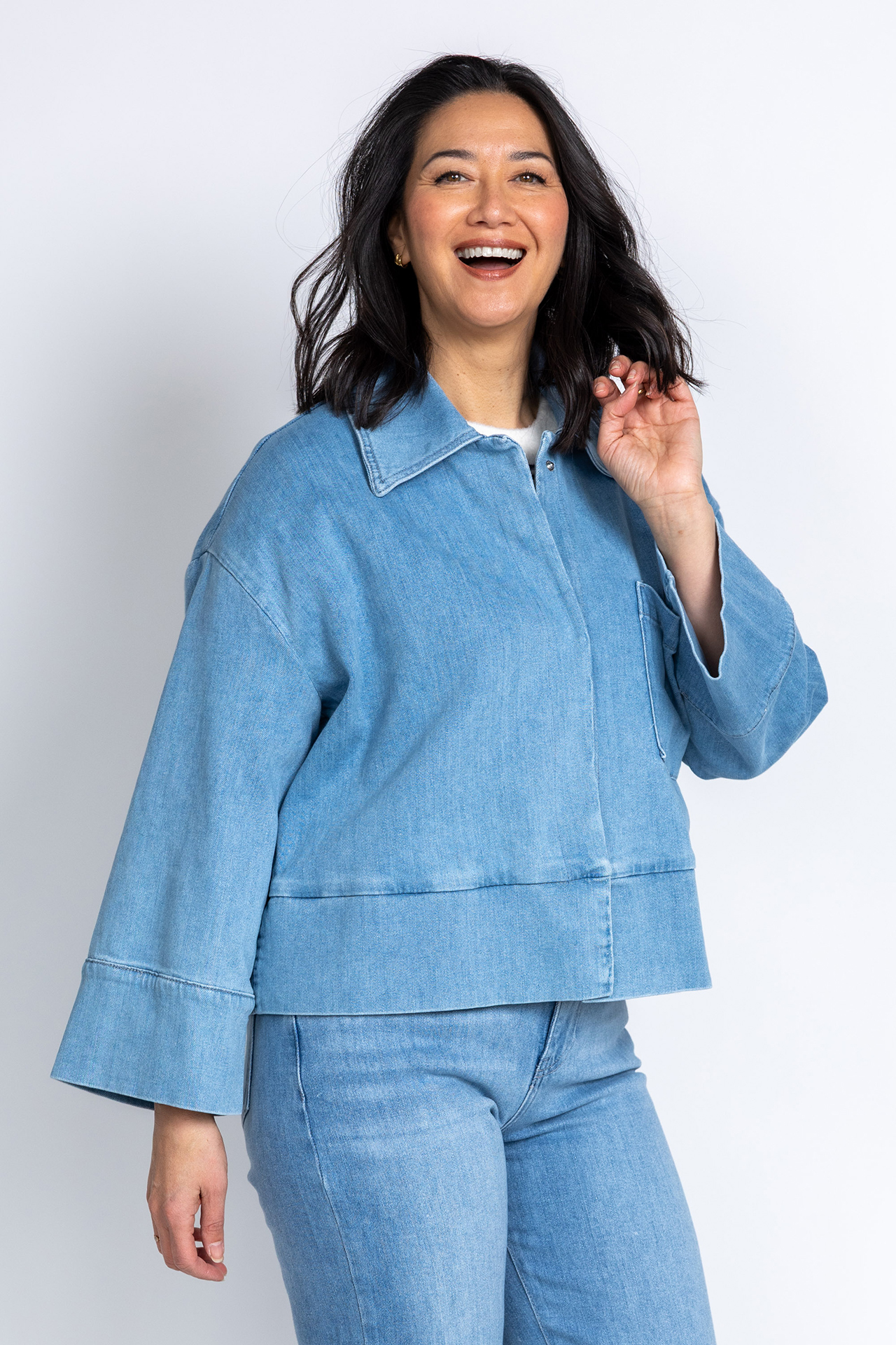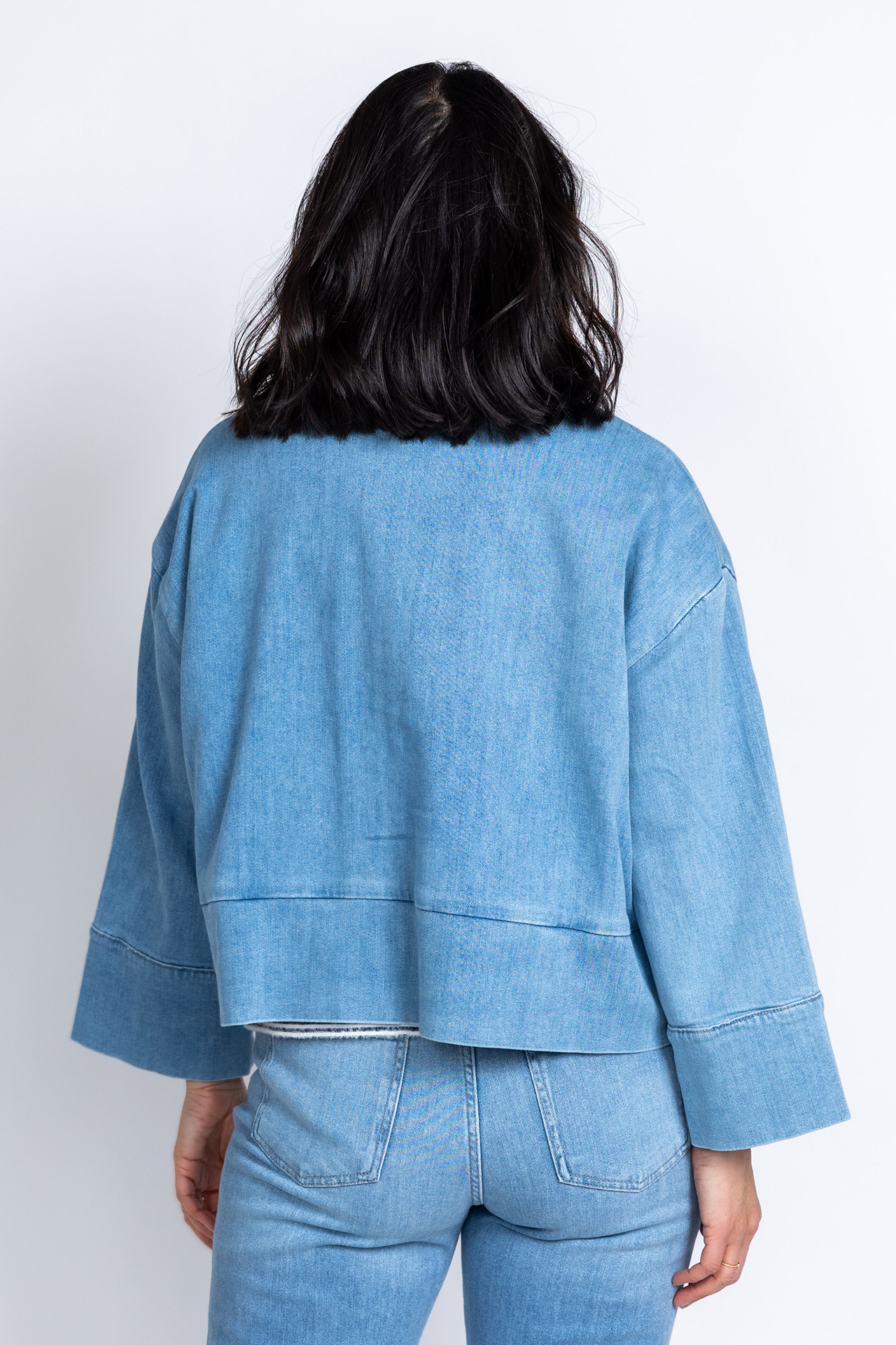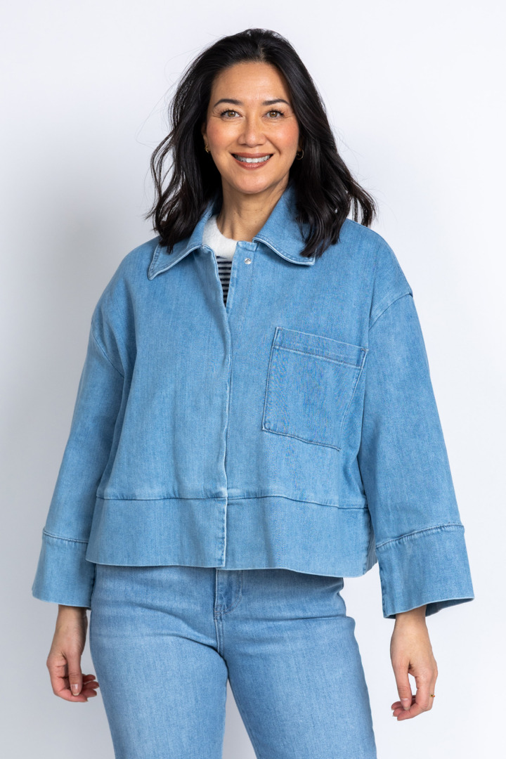 Loose fit jeansjasje met een borstzak en wijde mouwen