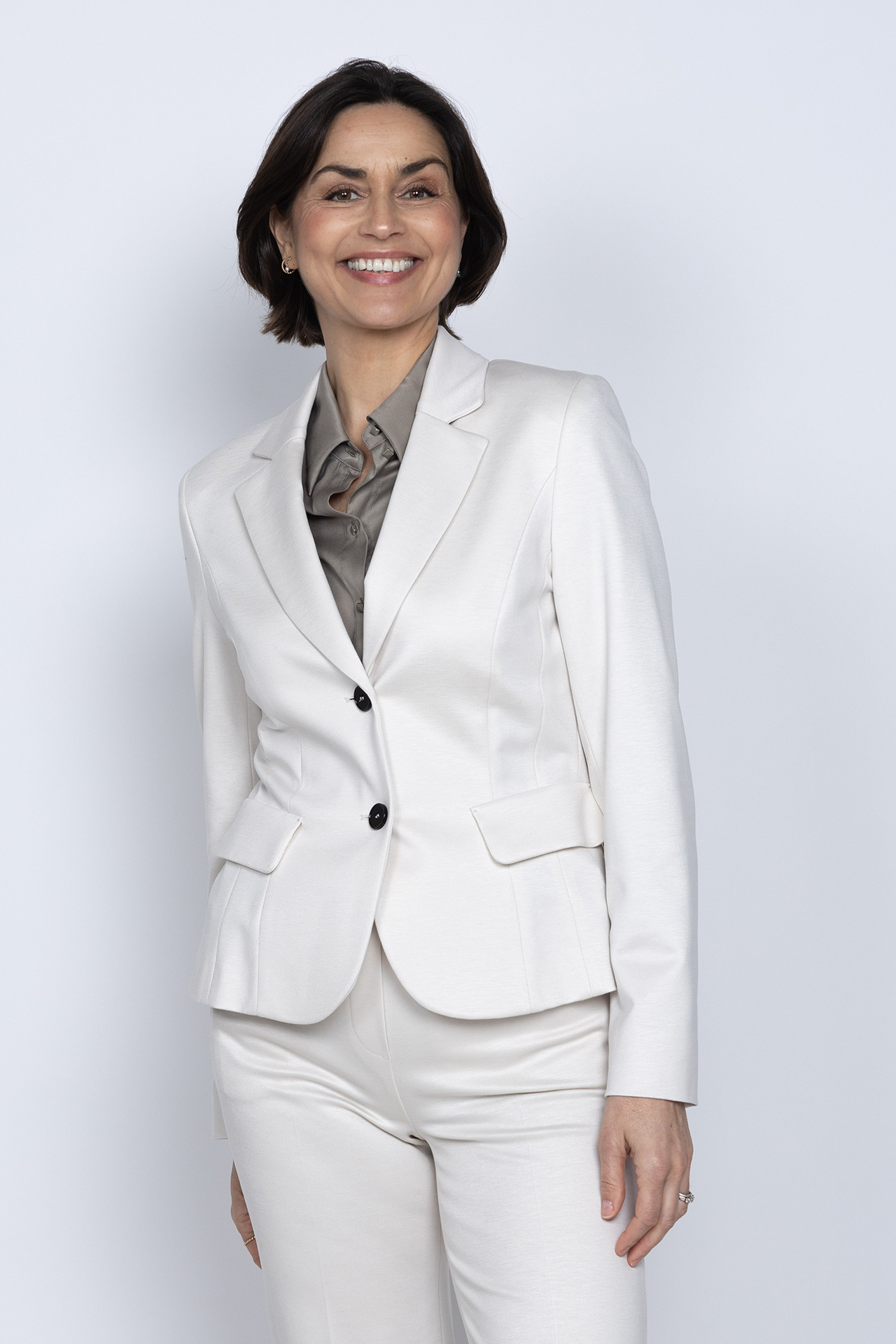 Getailleerde blazer met een reverskraag, donkere knopen en klepzakken aan de voorkant. Ook zit er stretch in de stof waardoor hij comfortabel draagt