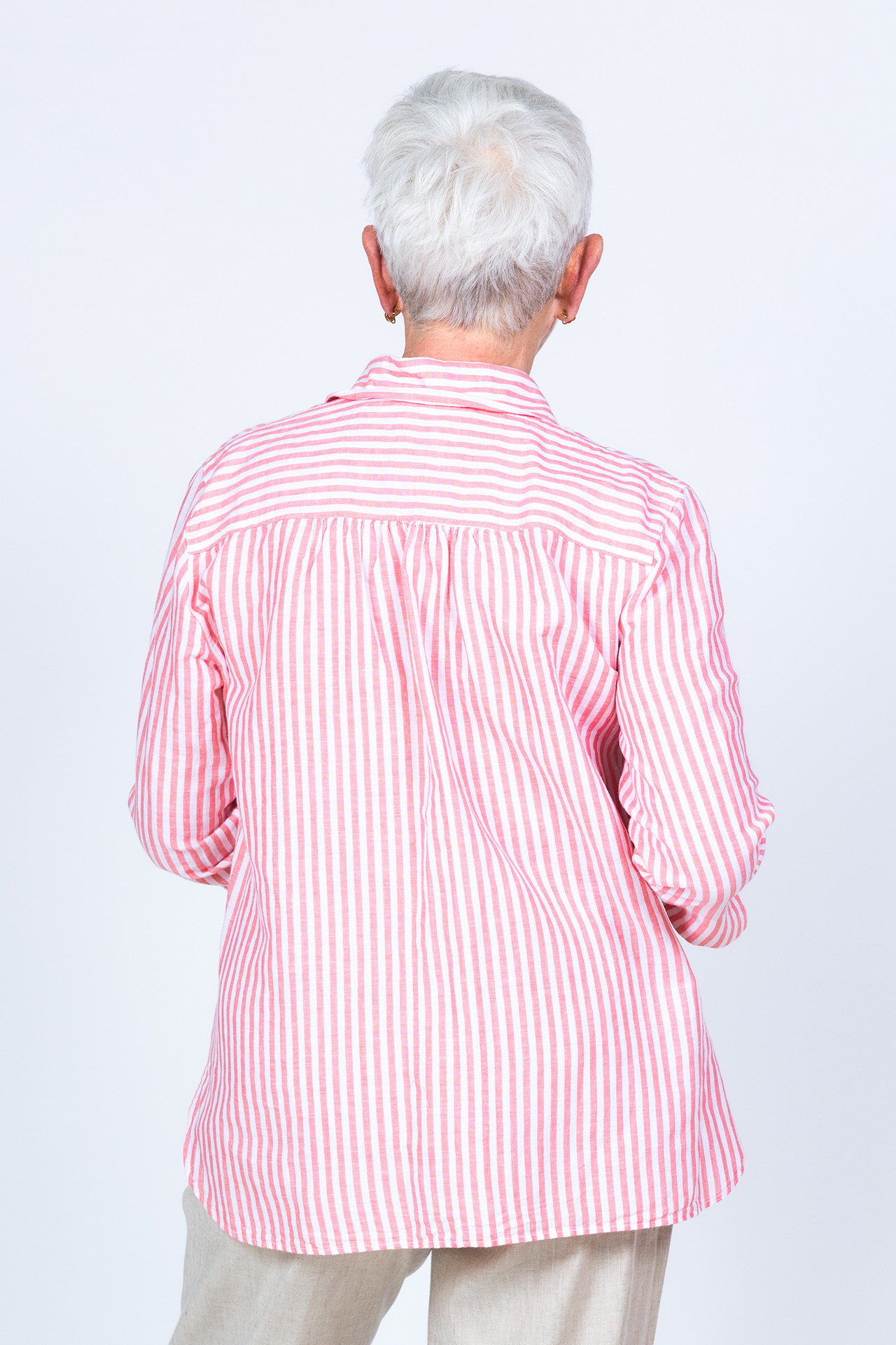 Roze/wit gestreepte blouse met driekwart mouwen met een splitje