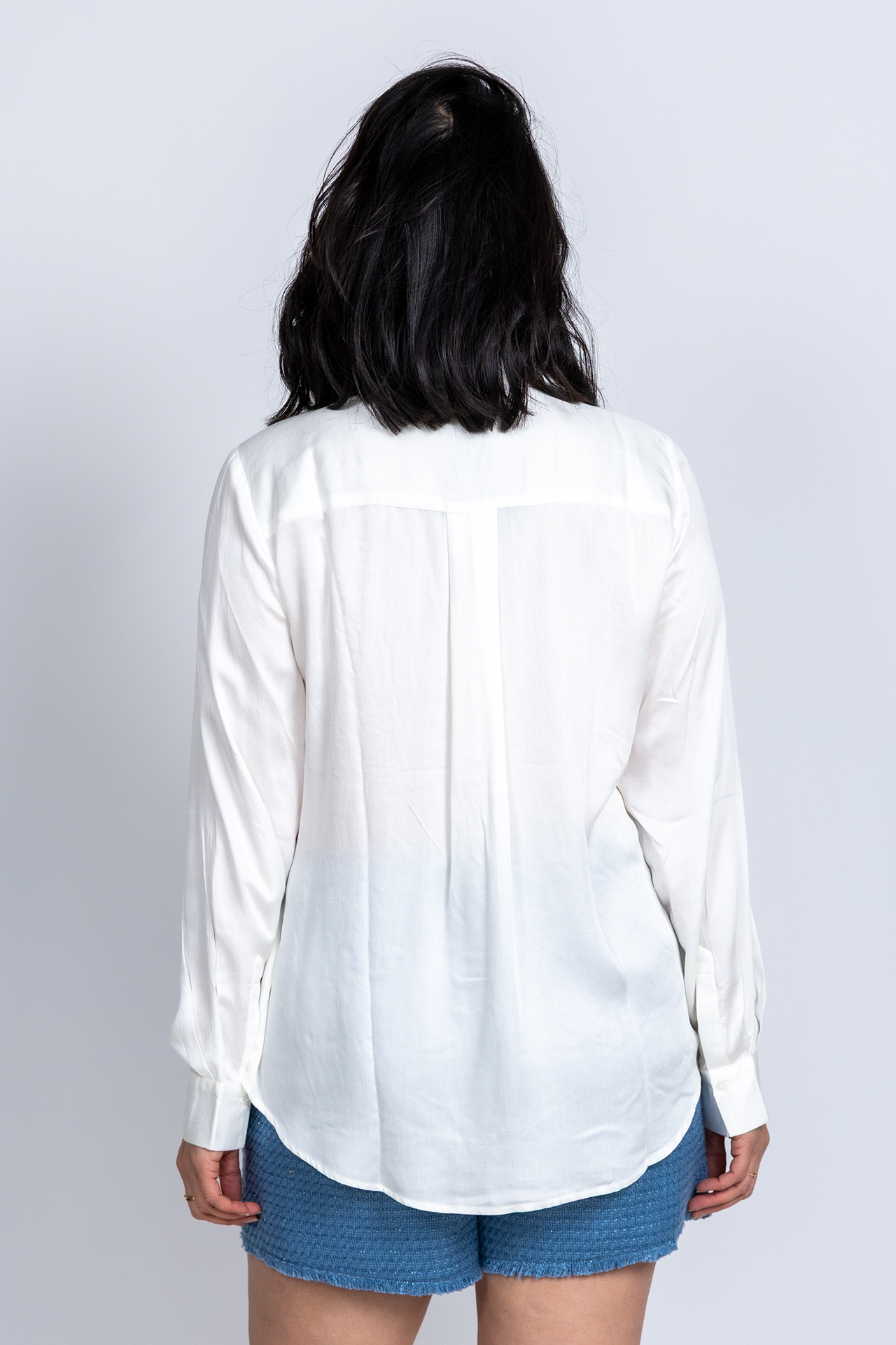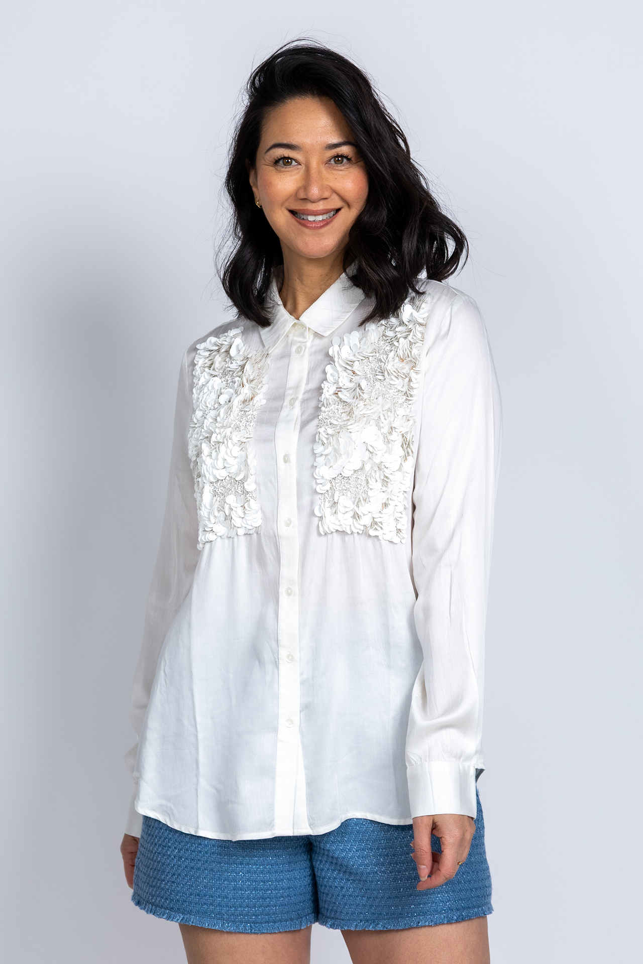Viscose blouse met pailletten aan de voorkant en een plooi aan de achterkant