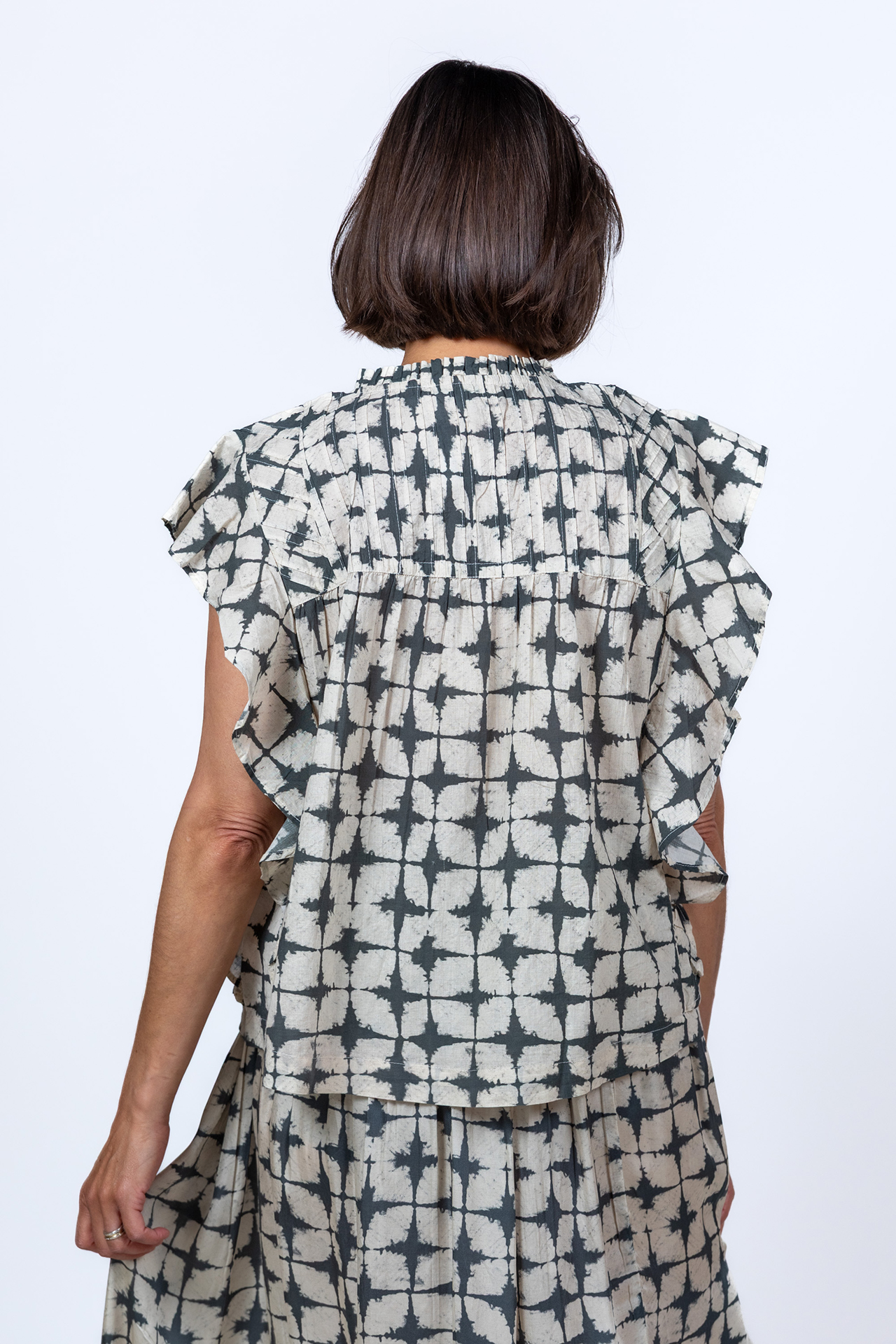 Dunne katoenen blouse met ruches aan de mouwen en hals