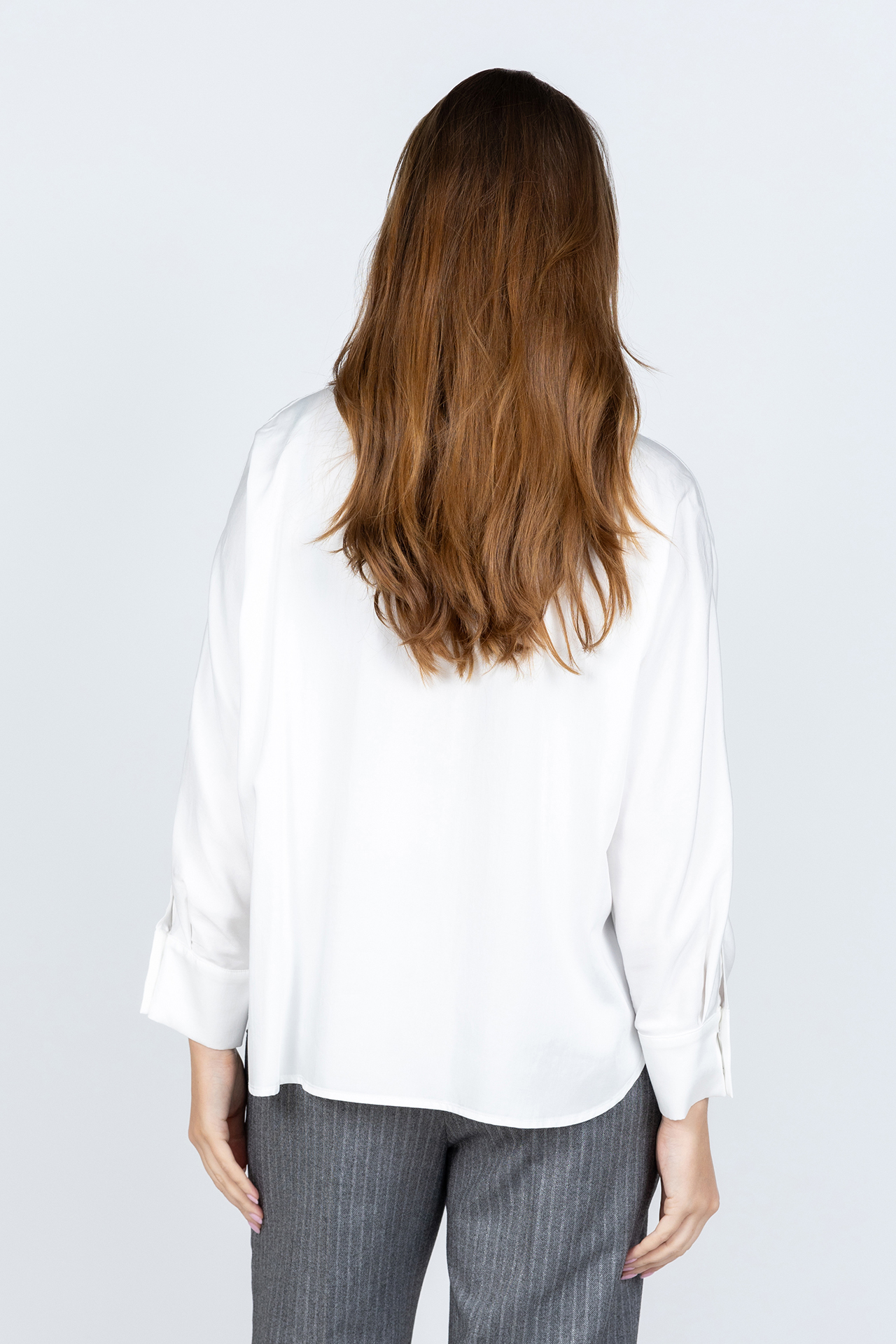 Blouse met driekwart mouwen, een blinde knoopsluiting en een strik aan de hals